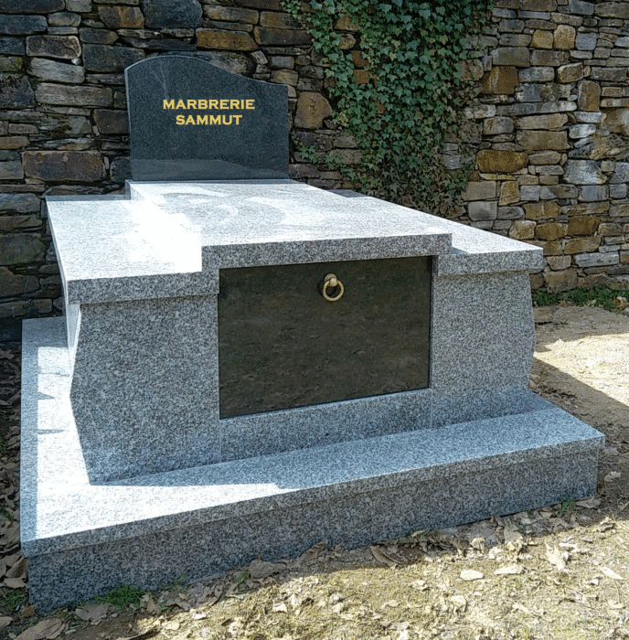 – Monuments cinéraires : il est composé soit d’une cavurne béton permettant de recevoir de 1 à 6 urnes et d’une dalle granit qui peut être accessoirisé d’une stèle qui est la partie verticale ou sont gravés les identités des défunts.